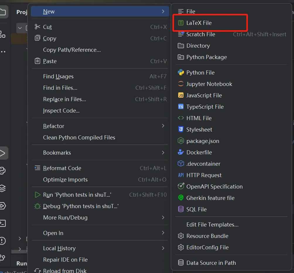 下载好latex环境后,你可以自由选择编辑器,Texstudio,Texworks,VScode等等都可以,大部分使用的是Tex live+TexStudio。我这里为了在数学建模过程中方便一些,决定在 Pycharm 中配置 Latex ,并手动实现 PDF 实时预览(想真正实时预览可以使用 VScode 配置 Latex ),操作如下: