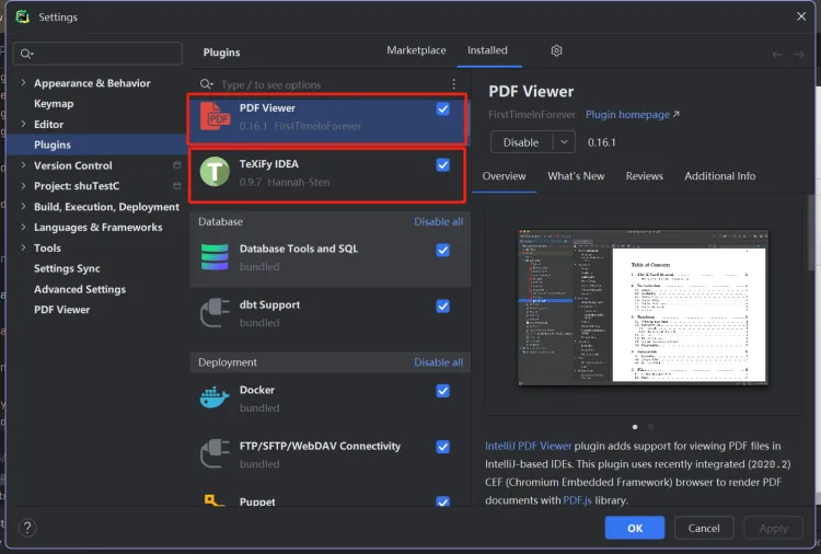 下载这两个插件(TeXIFy 配置时需要重启Pycharm)