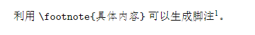利用 \verb|\footnote{具体内容}| 可以生成脚注\footnote{脚注可以补充说明一些东西}。