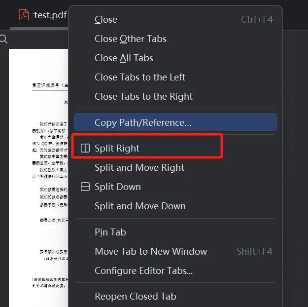 在项目中发现生成一个 out 文件夹,在这里找到pdf文件,在没有配置 Pdf Viewer 之前查看该文件都是使用电脑默认 pdf 查看器,配置之后就可以在Pycharm中直接打开了,右键该pdf文件点击 Split Right,就可以分屏查看